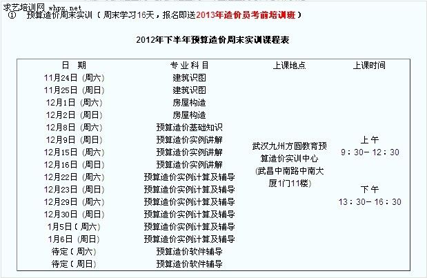 預(yù)算實訓(xùn)周末課表…