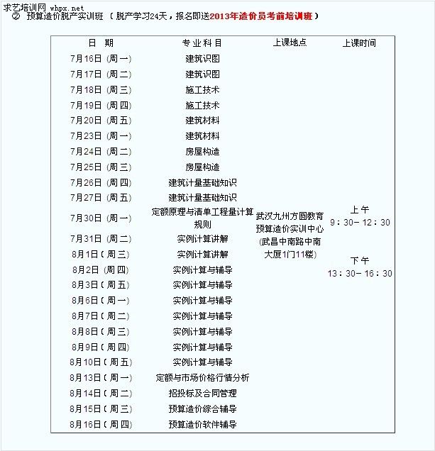 預(yù)算實訓(xùn)脫產(chǎn)課表…