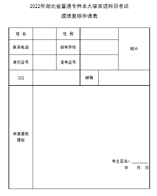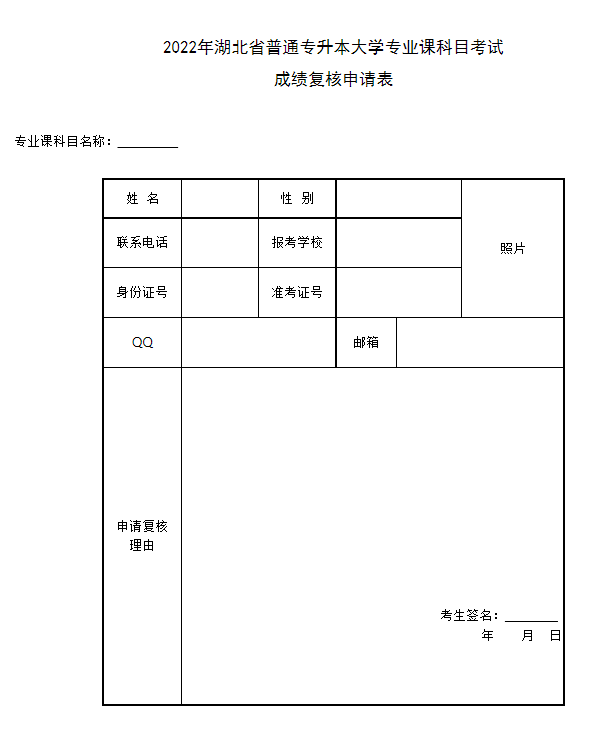 (1)考生將本人身份證、準(zhǔn)考證放在-起進(jìn)行拍照,并填寫《2022年湖北省普通專升本大學(xué)英語科目考試成績復(fù)核申請表》、《2022年湖北省普通專升本專業(yè)課科目考試成績復(fù)核申請表》掃描后上傳學(xué)校教務(wù)處郵箱(郵箱:jw hbuas.edu.cn),在郵件主題處注明復(fù)核科目。